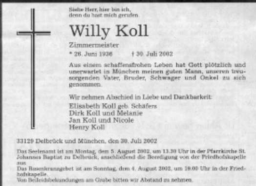 28.02.1968 | Geburt des Sohnes Dirk Koll | ||||||