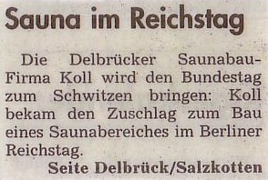 Falls Sie noch weitere Berichte über Koll in Printmedien entdeckt haben, so bitten wir um Mitteilung oder einen Scan zur Veröffentlichung: pressespiegel@koll-sauna.de |