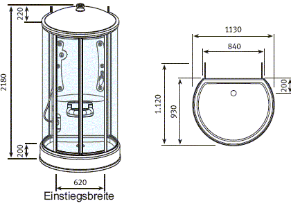 ausgestattet mit Duschwanne, Einhebelmischer und klappbaren Sitz.